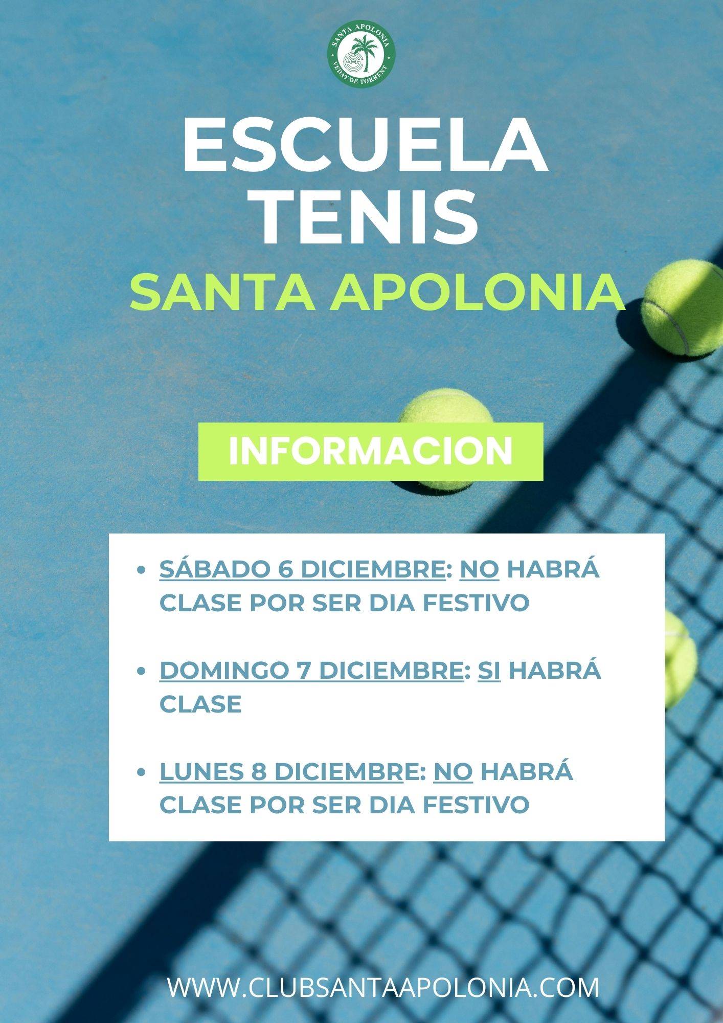 Clases tenis: 6 al 8 Diciembre