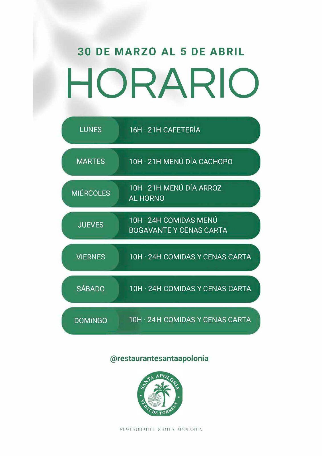 HORARIO RESTAURANTE SEMANA SANTA Y PASCUA