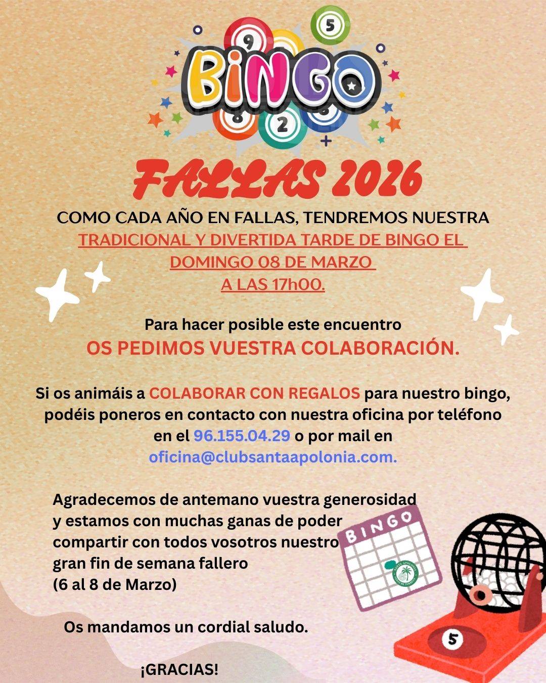 Recordatorio: BINGO FALLAS 2026