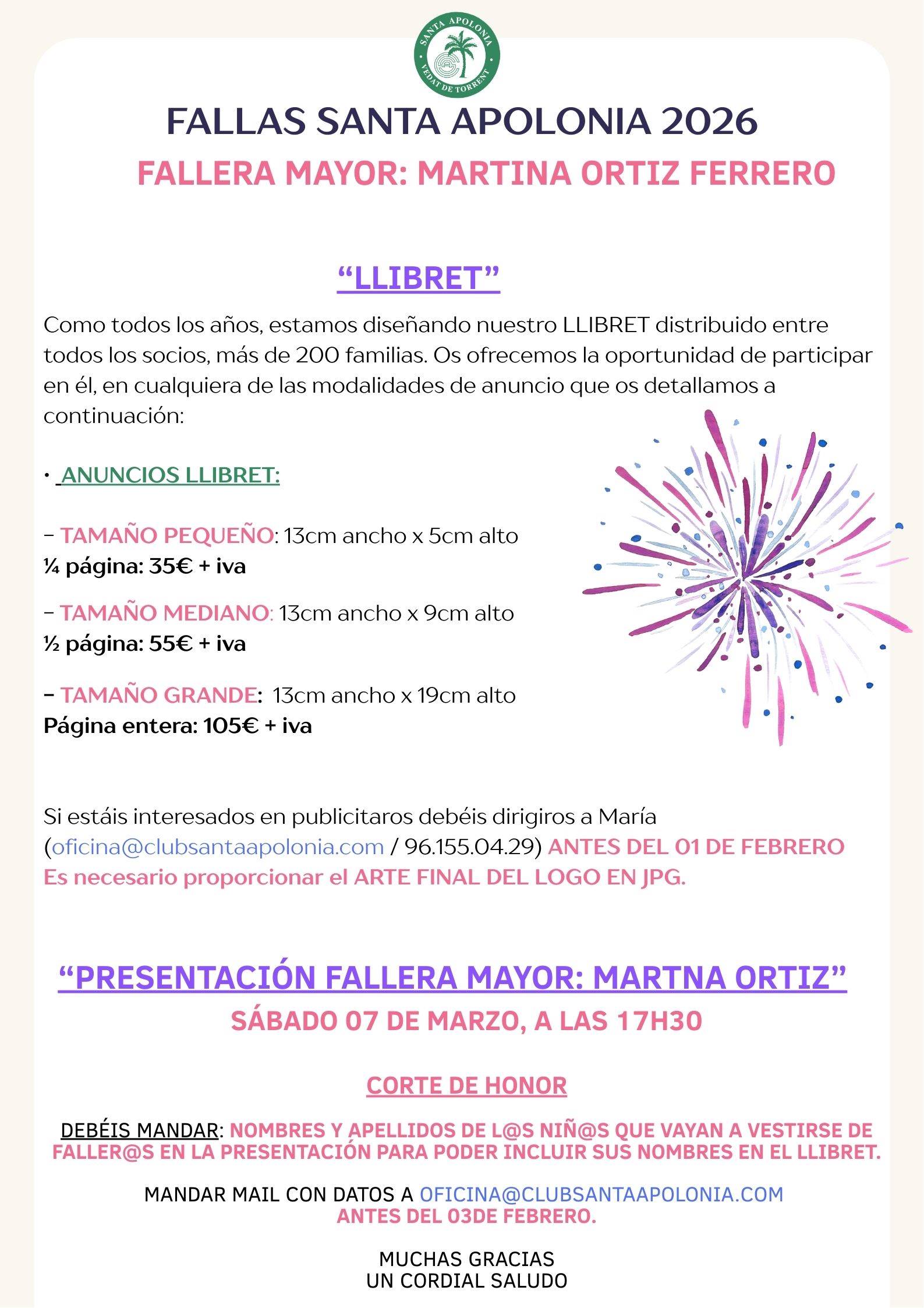 • 19/01/2026 FALLAS 2026: LLIBRET Y PRESENTACIÓN