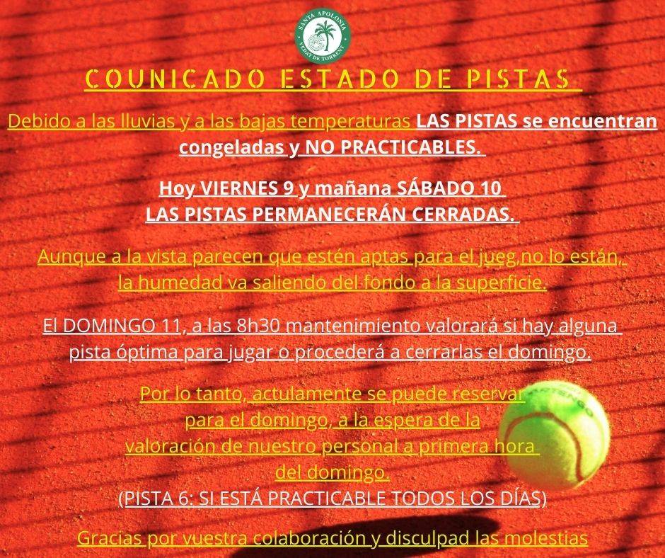 COMUNICADO PISTAS FIN DE SEMANA: 9 AL 11 ENERO