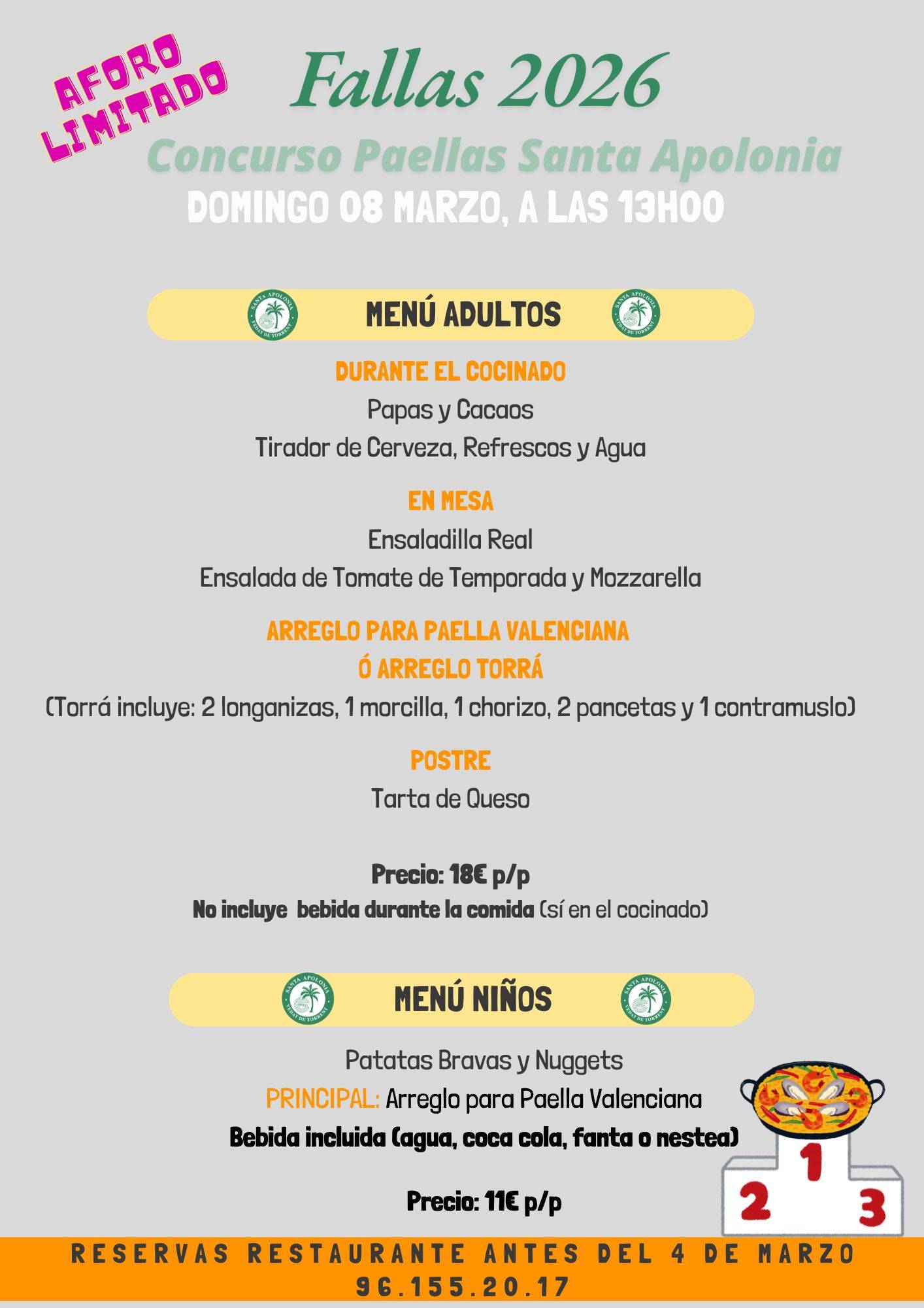 RESERVA EN EL RESTAURANTE ANTES DEL 4 DE MARZO: 96.155.04.29
